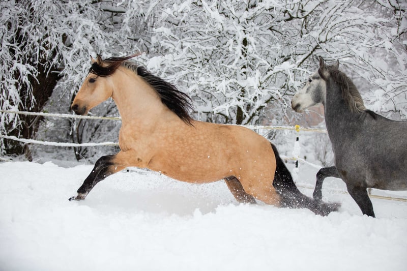 Suhail ist im Deckeinsatz und deckt momentan im Natursprung auf der Koppel. Er ist gekört beim rheinischen Pferdestammbuch, PSSM N/N Die Anlieferung der Stuten erfolgt Ende März und sie bleiben auf der Koppel bis Mitte April, den genauen Termin machen wir wetterabhängig. Die zweite Runde startet Anfang Mai bis Mitte Juni. Es ist für den letzten Zeitraum bereits eine andere Stute fix angemeldet, es sind also noch 2 Plätze frei (nehme max. 3 Stuten gleichzeitig) Ich stelle sie normalerweise gemeinsam auf die Koppel. Er ist sehr höflich und es ist der Natur am nächsten. Wenn sie das nicht möchten, gibt es auch die Möglichkeit bevor oder nachdem er mit den anderen Stuten auf der Koppel ist, einzeln zu decken. Der Hengst wird vor der Saison getupfert und auch währenddessen regelmäßig beprobt. Jede Stute muss vor dem Decken aktuelle Influenza und Tetanus Impfungen (mindestens die ersten beiden) nachweisen, 2 Tage zuvor entwurmt werden und eine negative Tupferprobe mitbringen. Wird die Stute nicht auf der Koppel bedeckt sondern aufgestallt, können auch wir die Tupferprobe Anfang der Rosse durchführen lassen. Die Buchungsgebühr beträgt dieses Jahr bei dem Decken in der Stutengruppe 300€ plus 400€ Fohlengeld wenn die Stute nachweislich trächtig ist. Ist sie nicht trächtig, kann sie auch im Folgejahr nochmal kommen. Wenn wir einzeln Decken sind es 350€ Buchungsgebühr und 450€ Fohlengeld, auch ist die Unterbringung teurer, da die Stute in einer Box aufgestallt ist (25€pro Tag). Auf der Koppel sind es nur 200€ pro Monat und die Pferde bleiben gemeinsam 5 bis 6 Wochen dort (mit Unterstand, Heu, Wasser, täglicher Kontrolle!). Natürlich kann man die Stute auch vorher schon abholen, vor allem wenn sie trächtig ist, macht das ja Sinn, wichtig ist nur, dass alle am gleichen Tag angeliefert werden, wegen der Integration. Das ist am einfachsten. Wir können (egal ob auf der Koppel oder im Stall) 21 Tage nach dem letzten Decksprung bzw. Rossetag einen Ultraschall machen um die Trächtigkeit nachzuweisen, das erspart das hin und herfahren. Der Equidenpass muss natürlich mitgebracht werden. Ein Deckschein vom rheinischen Pferdestammbuch wird natürlich ausgestellt. Ein Besuch vorab ist natürlich möglich. Die erste Nachzucht wird dieses Jahr Ende April geboren. Für mehr Infos/Buchung melden sie sich gerne via Whatsapp: +49 177 608 23 47