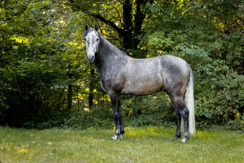 A stunning, well-behaved gelding for all occasions. He is looking for a motivated and ambitious horse enthusiast. His sire finished as reserve champion at the World Championship of all Barb stallions in Morocco and is trained up to Grand Prix level. Additionally, he has taken riders up to the silver riding badge at M level. His dam competed in endurance and driving sports and is still a popular horse for children and young riders today. All in all, excellent genetics that leave nothing to be desired.