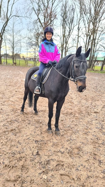 Mare for leisure riding. Well-behaved in the field. But can also do dressage and jumps.