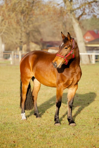 Se ofrece una potranca marrón nacida en 2023, con una altura actual de aproximadamente 1,60 m (y aún en crecimiento). Ha sido criada en un grupo estable, familiarizada con la vida en establo tranquila y muestra un carácter equilibrado, curiosa y agradable en su trato. Debido a su edad, aún no ha sido montada y ofrece las mejores condiciones para un desarrollo adecuado a su edad. Manejo: Lleva la cabezada, domina el ABC del potro, es sociable con las personas y aprende rápidamente. Condiciones de cuidado y alojamiento: Criada en paddock abierto, bien socializada, vacunada y desparasitada regularmente, con herradura. Pasaporte de équido disponible. Visitas posibles previa cita.
