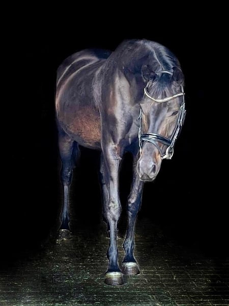 TI Feel Good 4 jarige merrie van Fürsten Look x Rubinero. Is nog rauw en staat in de open stal, ongeveer 1.58 m, zeer mensgericht en aaibaar. Heeft een vlek, de rug is iets verlaagd/zacht van achteren. Is wendbaar en lichtvoetig.
