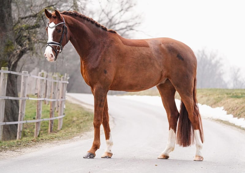 Klaki (geb. 2021) ist ein großrahmiges Nachwuchspferd mit ca. 173cm Stockmaß und befindet sich auf Dressurpferde A- Niveau. Er präsentiert sich sehr rittig und bereits gut ausbalanciert - ein Pferd, das für 2026 direkt zum Losreiten bereit ist. Besonders überzeugt seine kraftvolle, bergauf angelegte Galoppade. Klaki wurde schonend und altersgerecht ausgebildet und stammt direkt aus Züchterhand. Sein tolles Interieur macht ihn zu einem zuverlässigen und motivierten Partner im täglichen Training. Ein ideales Nachwuchspferd für Reiter, die viel Wert auf Rittigkeit, Qualität und Perspektive legen.