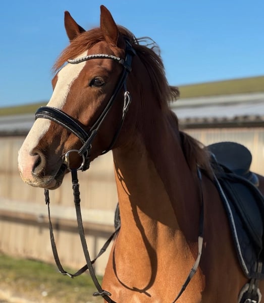 For sale is a 16.1 hh Brandenburg gelding, born in July 2020, who impresses with his affectionate nature, alertness, and willingness to work. He is accustomed to daily dressage training at riding horse level, rides confidently and with great awareness, and demonstrates both in free jumping up to 4.3 ft (1.30 m) and cross-country jumps a very composed and straightforward manner. In the terrain, he is a true reliable partner. He is familiar with new venues, although he has not competed yet due to time constraints. In handling, he is sensitive and needs a person he can trust. With calm, fair encouragement, he develops into an honest partner who enjoys working and moving. He is not a pure box horse – keeping him stabled all the time would neither be good for his body nor his mind (and honestly, that’s true for most horses 😉). He is barefoot, loads easily onto the trailer, is vaccinated, and has a TÜV valid until 2025 from head to hoof. A prophylactic chip removal on the right hind leg was performed – he has never been lame, shows no joint issues, and is completely healthy. He is used to daily turnout, including in groups, and is kept outside 24/7 with access to hay – this should continue, as he quickly loses condition and gets bored otherwise. 📌 Important: Rehoming only to a horse-friendly environment with plenty of movement, turnout, and further training. A wonderful young horse for riders seeking an honest, sensitive partner and eager to grow together. If interested or for more information, I look forward to hearing from you.