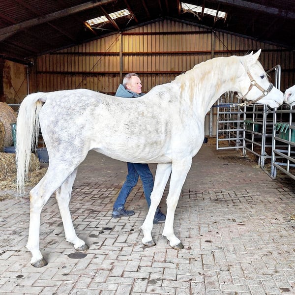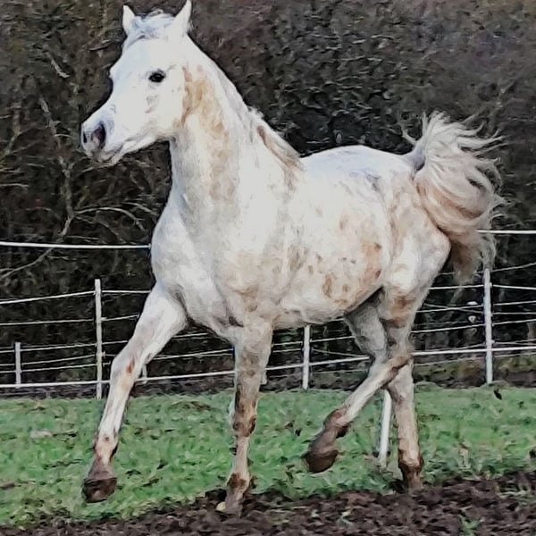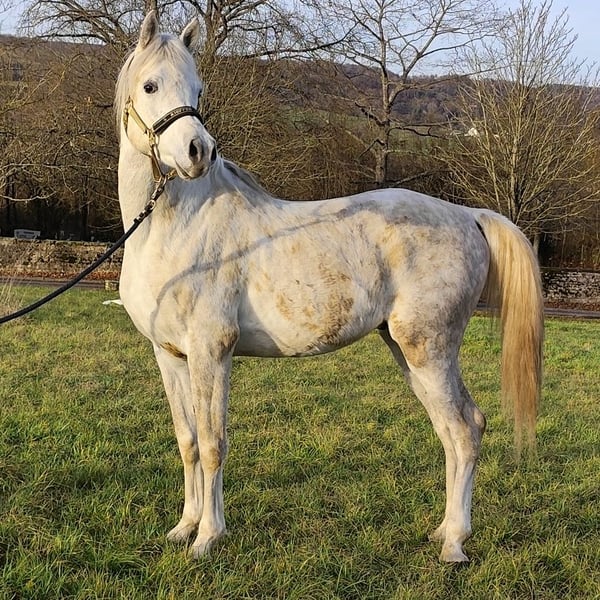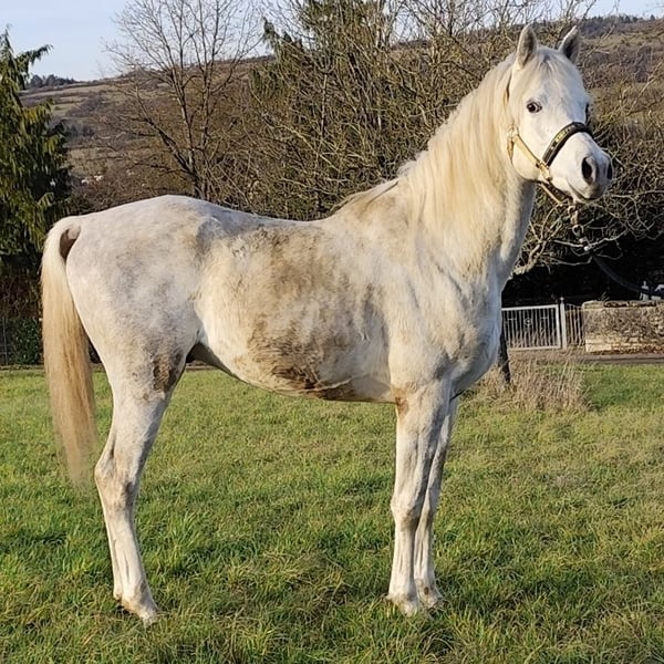 - Typical, charismatic Asil Arabian stallion for breeding, sport and leisure - ASIL ARABER (straight egyptian) - M-line: SG (Saklawi Gidrani) - very best pedigree: (ANSATA AMIR ZAMAN, AUTHENTIC IBN NAWAAL (premium), MESSAOUD elite stallion, MAYSOUN elite stallion, MADKOUR, MORAFIC) - Large eyes - very much expression in the face - highly intelligent, very attentive and docile - very present (knows how to put himself in the limelight) - long shoulder - high set, long, curved neck with high erection - super correct foundation (square type) - long croup - strong joints and good hooves - Super GGA (very good walk) - Very people-oriented and affectionate - greets his fellow human beings from afar - super sociable, you can do everything with him - strong nerves (a rock in the surf!) - easy to forge and load - a horse with an extraordinary character - the last 3 photos show his beautiful mother AL CHADIM GAZIA Sales price: VHB 9.000,- Euro -