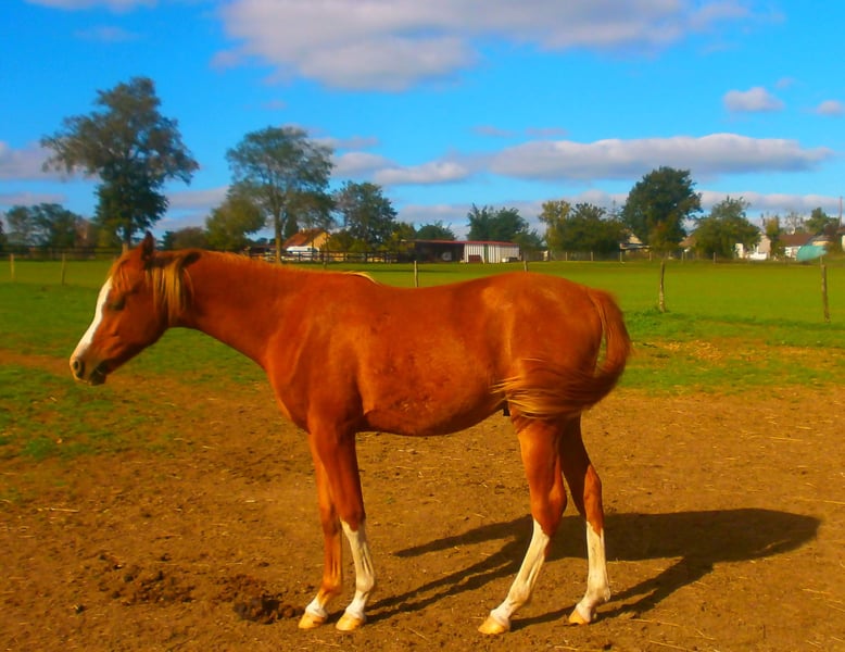 Hongre Pur Sang Arabe très typé, belles allures , jolie couleur alezan , fera plus de 150 cm adulte, bien manipulé. Conviendrait pour différentes disciplines . Sa mère provient des Emirats ou elle à fait une carrière d'endurance, c'est son deuxième produit.
