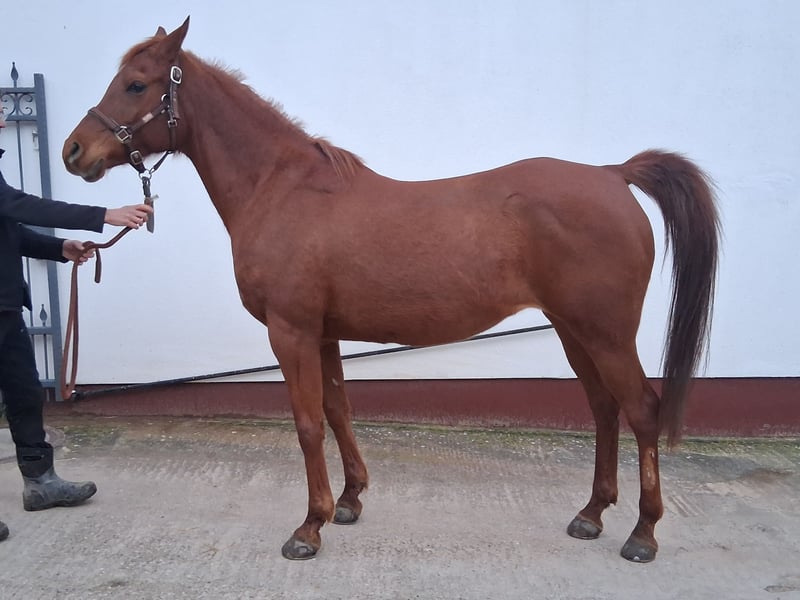Wir geben aus akuten Platz- und Reitermangel, diese sensible, liebe und temperamentvolle Stute, in pferdeerfahrene Hände ab. Wir können sie uns durchaus im Distanzsport vorstellen. Im Umgang ein Schatz und von Kindern problemlos zu putzen und führen. Sie reagiert in der Rosse empfindlich auf den zurückgelegten Schenkel, ansonsten leichtrittig, äußerst sitzbequem und im Gelände lauffreudig aber gut zu regulieren. Wird bei uns auch immer wieder mal von Kindern geritten, sollte aber grundsätzlich von einer erfahrenen Person gearbeitet werden. Geht mit Sidepull und mit normalen Gebiss. Bei uns beschlagen, geht aber auch barhuf. Keine bekannten Erkrankungen. Hat am Kopf ein kleines Überbein, was nicht stört. Sie kennt Offenstall und Box mit täglich Weidegang. Wird nur in nachweislich erfahrene Hände, mit ausreichend Auslauf abgegeben. Wir können sie uns auch gut als Zuchtstute vorstellen. Sie ist kein Gewichtsträger und kein Anfängerpferd, auch wenn sie leichtrittig ist. Aufgrund einer ausgeheilten Verletzung, die nur oberflächlich war und dem akuten Platz- und Reitermangel, günstig an Schnellenschlossene, abzugeben. Bitte nur ernstgemeinte Anfragen von Menschen mit ausreichend Pferdeerfahrung, Platz und Zeit.
