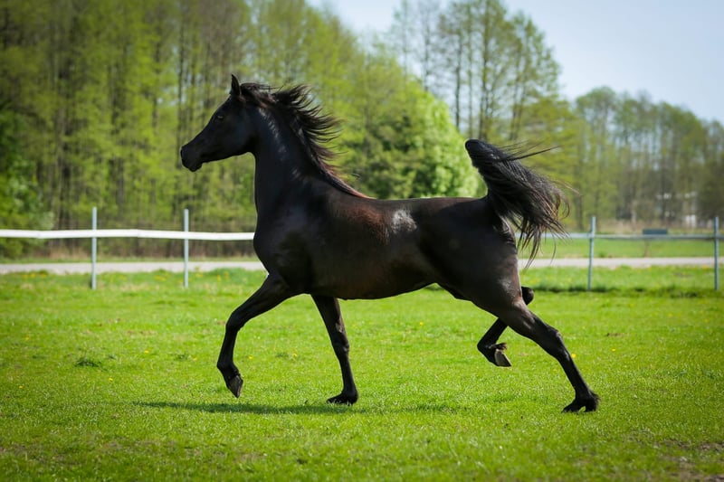 Hello, I am selling a beautiful black mare. She has a lovely movement, is well-behaved, and works nicely in hand.