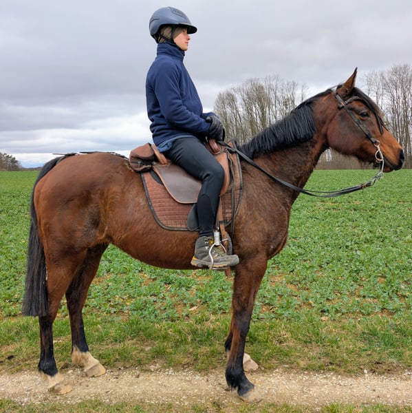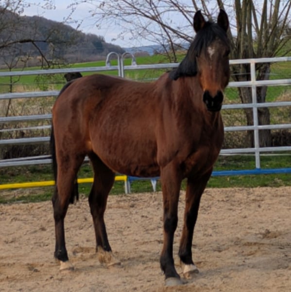Unsere Wampi, Vandy, fällt dem Abitur meines Sohnes zum Opfer. Um ihrer momentan bodenlosen Unterbeschäftigung zu entgegnen, soll sie nun an eine(n) Distanzreiter*in, die aktiv reitet und selbstverständlich VDD Mitglied ist. Wir stellen sie Standort ungebunden (innerhalb Deutschlands) einem erfahrenen Menschen mit Herz und Verstand zur Verfügung. Sie hat noch einige gute Jahre vor sich, die sie nicht auf der Koppel vertrödeln soll! Vandy WILL vorwärts und läuft mit Ausdauer, Kampfgeist und Temperament, welches wir mit den Jahren in gut kontrollierbare Arbeitsmoral einbetten konnten. Unter dem falschen Reiter und ohne ruhige, aber konsequente Führung wird sie zu einem Geschoss, sodass der Opa Dormane sich im Grabe umdrehen würde- alle, die DIESEN Namen nicht im Distanzsport verorten können, sollten aufhören zu lesen... Aufmerksam, wach, sicher und erfahren im Gelände, entspannt am Platz, wobei hier dringend die stabile Anlehnung ins ruhige Abwärts und weniger ins ungeduldige Vorwärts in den Fokus gehört, ist unsere Wampi eine ehrgeizige, liebe, aber auch dominante Stute. Sie verlangt Konzentration und Reaktion von ihrem Reiter. Am langen Zügel gehen ist dann problemlos, wenn man sich ihren Respekt und ihr Vertrauen erarbeitet hat. Zu herrisch und sie wird richtig grantig, zu weich und sie verliert den Gehorsam, ist die Balance aber gefunden, gibt sie wirklich alles für ihren Menschen. Bist du das? Dann melde dich bei uns!