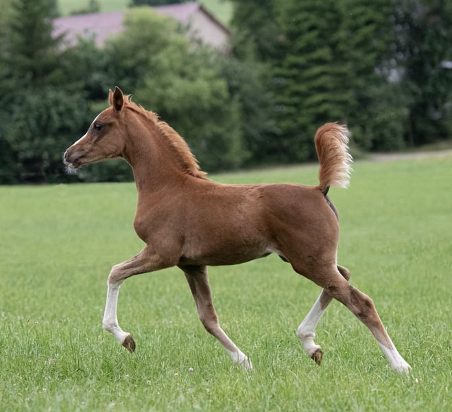 Wir züchten Vollblutaraber zum Reiten, haben zwei Hengste und 7 Zuchtstuten. Insgesamt immer etwa 20 Pferde. Unsere Pferde wachsen auf großen Weiden auf mit täglichem Kontakt zum Menschen. Wir haben immer verschiedene Pferde im Verkauf in verschiedenen Altersklassen.