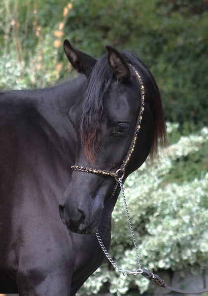 Beautiful 1.5-year-old filly, black homozygous by parentage looking for a new home. Will be tall, final estimated height approx. 156/7 + cm. Correct solid body, super movements, nice head. Very interesting pedigree with champions such as Simeon Sadik, Dubai Pasha, Thee Deesperado, The Minstril, Wagram, Probat, etc. Prospect for breeding/show or riding/endurance (top endurance pedigree). Registered in Polish Arabian Stud Book, microchipped, DNA tested. Price +8% VAT WhatsApp +48 513 179 245 https://www.black-arabians.com/