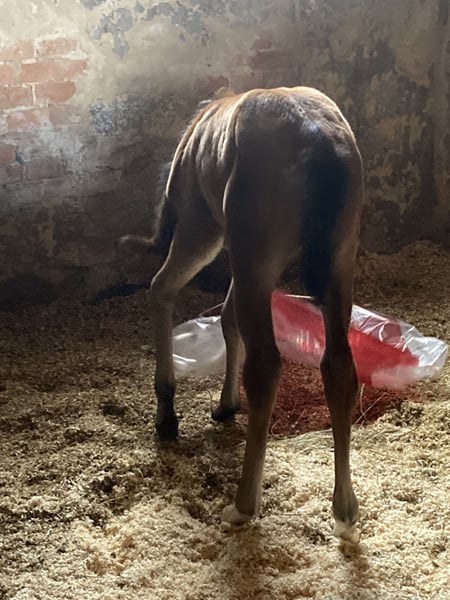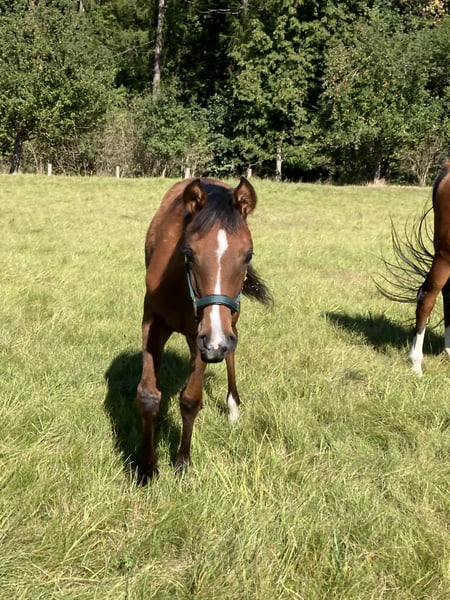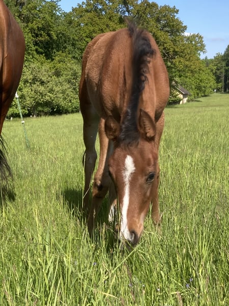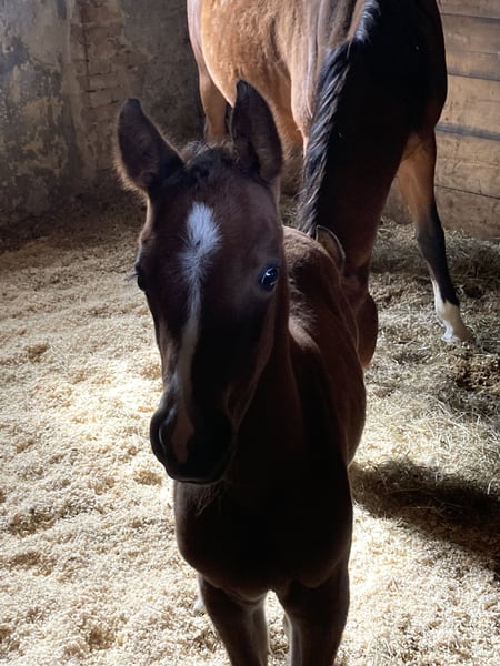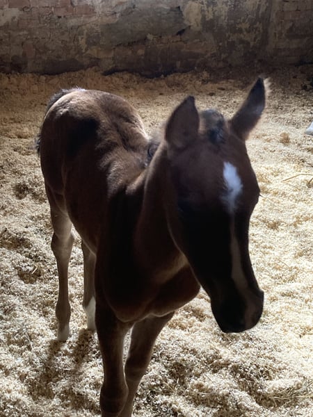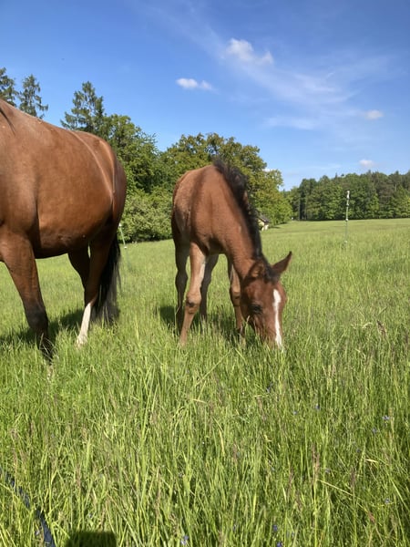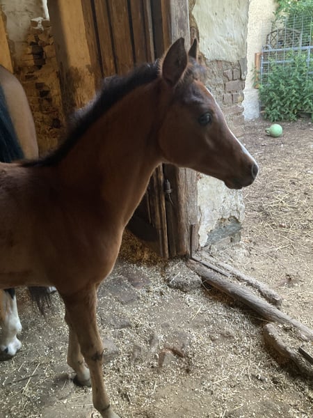 With a heavy heart, I have to part with my homebred filly due to family circumstances. Elli was born here in March and has learned everything a foal should know: leading with a halter, hoof care, grooming... She has full papers from VVÖ and has already been chipped, vaccinated, and regularly dewormed. Initially shy, Elli quickly opens up and then shows herself to be very curious and affectionate. Elli is now a genetic rarity. Her sire was a highly successful racehorse with highly sought-after Polish bloodlines, and on her dam's side, Elli also carries a lot of performance blood. She is expected to grow quite tall with a good frame, and her rich bay color with plenty of Rapp blood makes her potentially very interesting for breeding as well. Price is secondary to place; therefore, VhB.