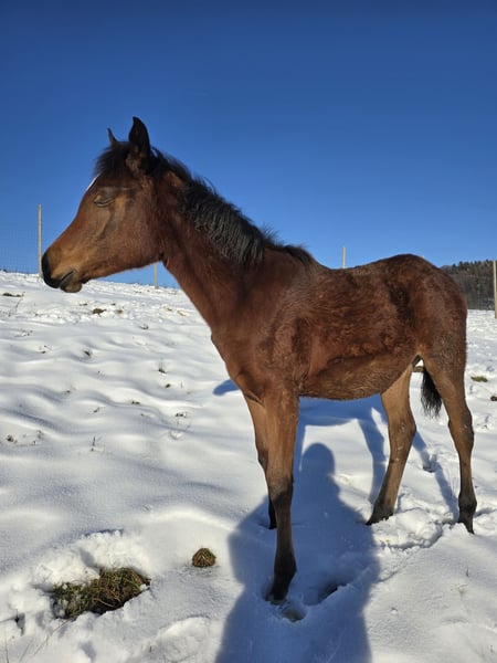 Braunes, liebes Vollblutaraber Stutfohlen, geb. am 18.06.2025, sucht ein neues Zuhause. Sie hat Abstammungspapiere, beherrscht das Fohlen-ABC und kennt Hängerfahren. Sie ist sehr menschenbezogen und kommt aus der Herde meist als Erste auf einen zu. 🐴