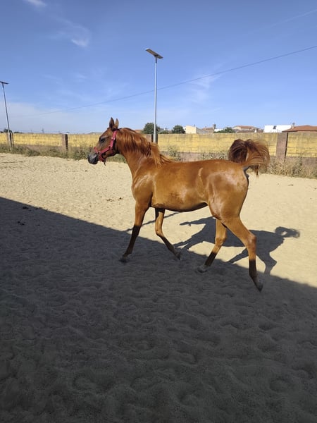 ¡Oportunidad de adquirir una hermosa y elegante yegua de pura raza árabe! Características principales: - Raza: Pura Raza Árabe - Sexo: Yegua - Año de nacimiento: 2023 - Color: Alazán - Alzada: 153 cm - Especialidad: Raid Esta joven y enérgica yegua combina belleza, resistencia y carácter, perfecta para quienes buscan un caballo de alto rendimiento en actividades de raid o para disfrutar en paseos y competiciones. Para más información y detalles, no dudes en contactarnos. ¡No dejes pasar esta oportunidad de tener una ejemplar excepcional!