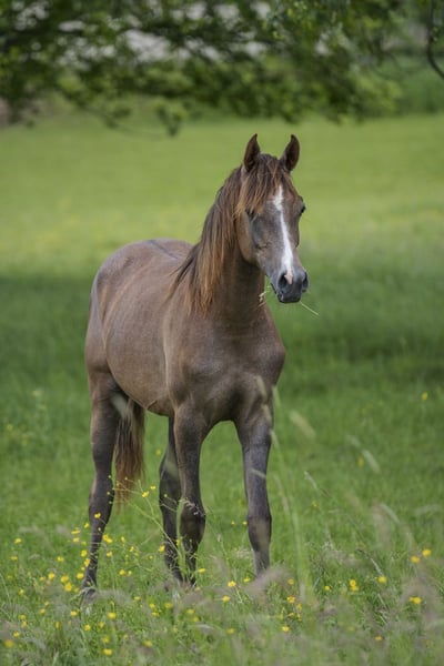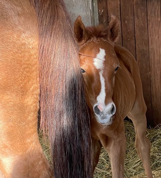 Efanya comes from a Polish maternal line. Both parents are premium horses of the association. Efanya herself was awarded by the VZAP as a foal. Like all our young horses, Efanya grows up on large pastures with plenty of movement and daily contact with humans. Efanya is people-oriented, curious, and trusting. Her father, A Magic Man of Kossack, was the highest-rated stallion of the association for two consecutive years. He passes on his good character traits, conformation, and very good movements in all three gaits. Photos: Marixx, M.Kubat, Sabine Althaus