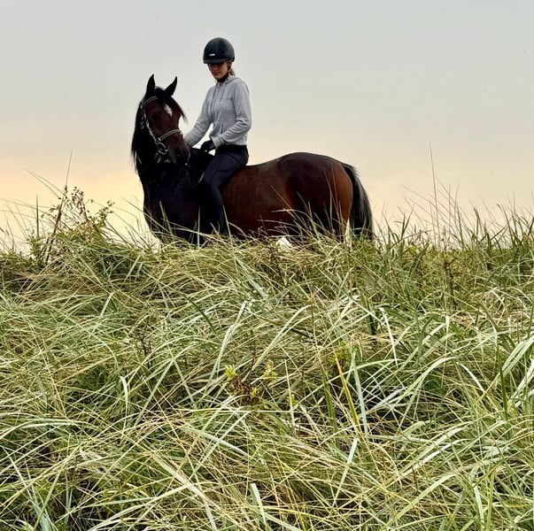 Die feine Stute ist immer cool und freundlich. Sie lernt ein paar Basisdinge wie kurze Hängerfahrten/ routiniertes Verladen, Spazieren gehen, als Handpferd mitlaufen, im See schwimmen, ein- und ausdecken, Fliegenspray aufsprühen uvm. Sie ist sehr geduldig und lieb. Am liebsten lässt sie sich von den Kindern füttern und streicheln. Aufgrund ihrer Qualität und der seltenen Abstammung auch für die Zucht sehr interessant.