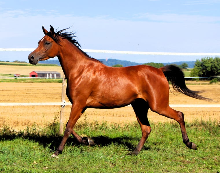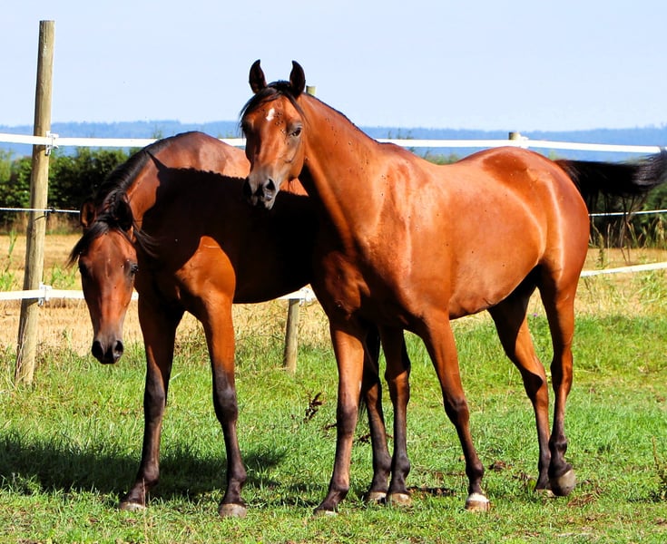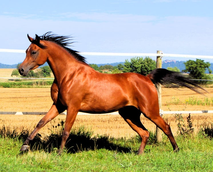 Absolutissima fait honneur à son nom. C'est vraiment une jument absolument magnifique ! Elle est superbe, avec une excellente conformation, des jambes droites, de bons sabots, une jolie tête, de belles allures et elle a un caractère enchanteur. Elle est extrêmement affectueuse, adore les câlins, est curieuse et s'entend bien avec les autres chevaux dans le troupeau. Elle profite encore de sa vie dans le pré avec le groupe de jeunes chevaux, mais elle est prête à commencer à travailler et à découvrir le monde. Étant donné que le pré a une pente et une source, elle possède déjà un peu les prérequis pour devenir un futur cheval de randonnée ou de compétition de distance : elle est sûre de ses pas et n'a pas peur de boire dans des eaux au sol. De plus, sa mère a prouvé ses capacités sur les courses. Absolutissima est située en Alsace, à 67440 Reutenbourg.