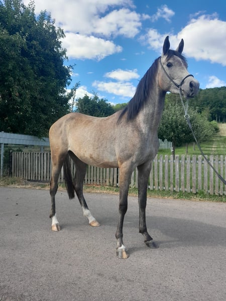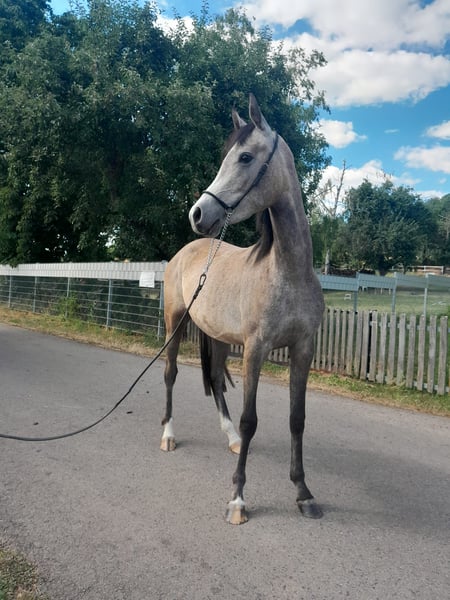For sale is our charming Thoroughbred Arabian mare, born in 2022. She presents herself in an elegant gray coat and will reach a height of approximately 152 cm. This charming mare is excellent for leisure activities and is ideal for horse lovers looking for a loving and reliable companion. She is friendly, curious, and well-mannered. Our mare has already gained a lot of experience with people and is ready for new adventures. She is well-trained and has a gentle nature, making her a perfect partner for rides and relaxed hours in the countryside.