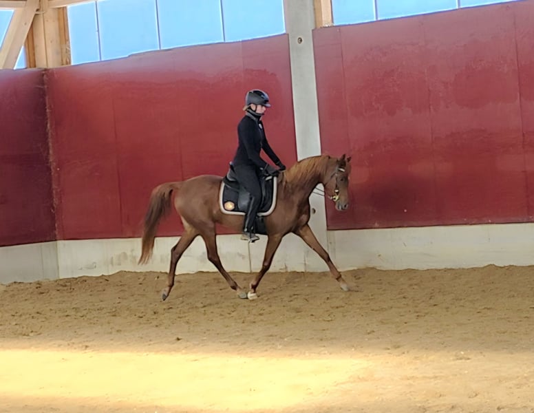 Entrene usted mismo a su futuro compañero de ocio, aquí tiene la oportunidad. Ofrecemos esta hermosa yegua joven de 2 años. Ella regresó a su establo hace dos meses desde el centro de cría HuL Marbach y ahora está buscando a su humano. Ella es muy orientada a las personas, valiente y nada puede perturbarla tan rápidamente. Aprende muy rápido y ya está adquiriendo sus primeras experiencias con el trabajo en tierra. Lavado, pulverización, veterinario y herrador no son un problema para ella. Por favor, pregunte sólo por teléfono.