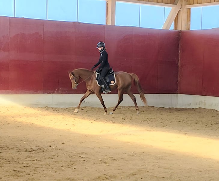 Je toekomstige vrijetijdspartner zelf opleiden, hier is de kans. Wij bieden deze prachtige 2-jarige jonge merrie aan. Ze is twee maanden geleden van het opfokcentrum HuL Marbach teruggekomen naar haar eigen stal en is nu op zoek naar haar mens. Ze is zeer mensgericht, moedig en niets kan haar zo snel van haar stuk brengen. Ze leert heel snel en doet nu al haar eerste ervaring op met grondwerk. Wassen, spuiten, dierenarts en hoefsmid zijn geen probleem voor haar. Gelieve alleen telefonisch te informeren.
