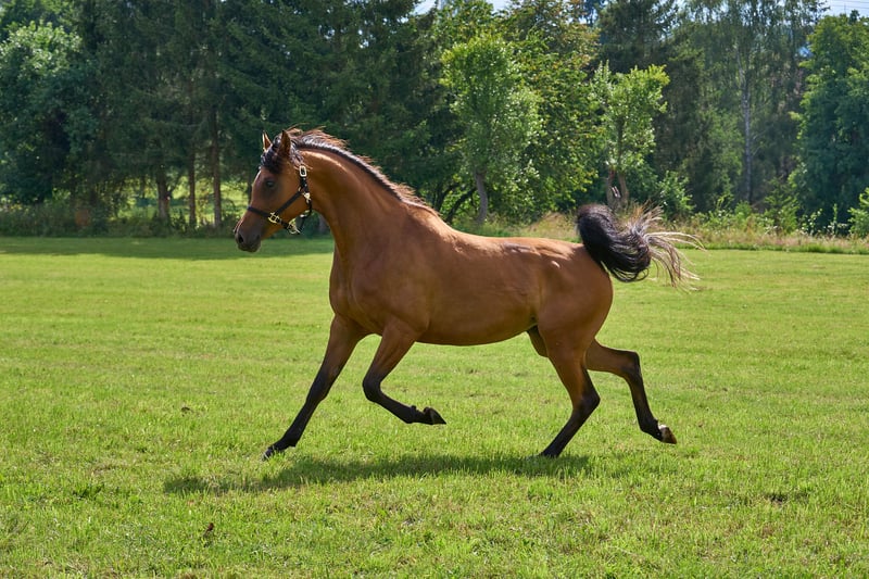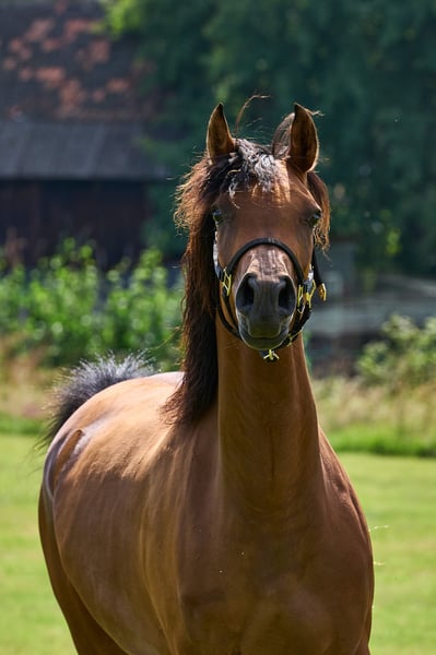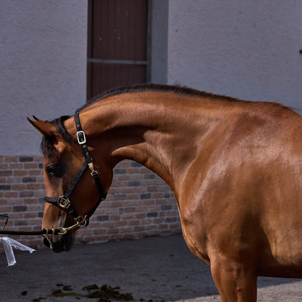 HF Karenina tiene actualmente un potro macho a su lado. A finales de octubre podría ser destetada. No la hemos cubierto para 2026. La ofrecemos porque en los últimos años hemos tenido suficientes yeguas de cría para nuestra cría y porque creemos que Karenina también podría destacar en el deporte. Su padre ByStival Kossack fue exitoso en exposiciones y en doma. Un medio hermano estuvo en la pista de carreras y compite en deportes de resistencia. El padre de la madre, Kamerton (Élite), es conocido por su descendencia en el deporte. Además, ha demostrado salud y resistencia. El pedigree de Karenina está libre de líneas modernas de exhibición. Proviene principalmente de líneas rusas, combinadas con sangre Crabbet y española. Con su gran ojo y su crin rizada, esta yegua siempre ha sido un atractivo. Como la cubrimos cuando tenía cuatro años y ahora tiene su potro, hasta ahora no ha sido entrenada.