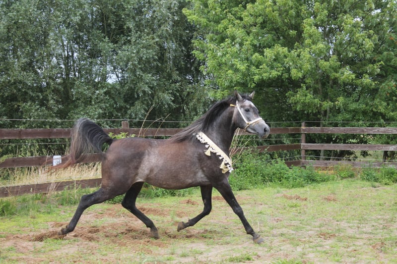 Diese wünderschöne und typvolle Araberstute sucht einen neuen Mörchengeber. Sie besticht durch ihr menschenbezogenes Wesen und den unkomplizierten Umgang. Sie vereint durch ihre Abstammung Leistung mit Schönheit. Auffällig ist der sehr elastische Trab und der kraftvolle Galopp. Sie ist sehr bewegungsstark und sehr wendig. Ich kann sie mir daher auch im Westernreiten gut vorstellen. Interessant ist auch, trotz der Rasse, ist sie im Wesen sehr ausgeglichen. Sie ist sehr menschenbezogen, gelehrig und wie schon beschrieben, unkompliziert in ihrer Handhabung. Sie ist hier geboren und in einer Herde gross geworden. Sie kennt Boxenhaltung, aber zur Zeit 24/7 auf der Weide. Sie wurde über den Sommer ganz schonend am Hof angeritten, leider abgebrochen, da die Bereiterin nach Süddeutschland gezogen ist. Video gerne über Whatsapp! Ist ca 155 cm gross.