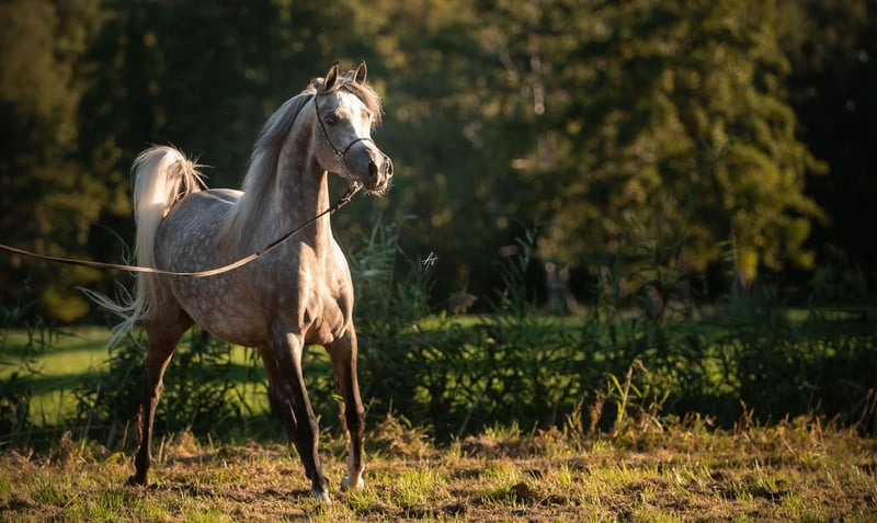 Elmyrah is a 7-year-old Arabian Thoroughbred mare. Her sire, Sharahm (by Gharam), is a stallion who has won numerous show competitions, including a bronze medal at the World Championships in 2025. Elmyrah has also made a name for herself in the show ring, finishing 3rd at the Belgian Championships at the age of 4. Following her show career, she foaled a foal in 2025, then underwent backing and training. She is therefore suitable for a breeding career. Having been in work since 2025, she remains somewhat green but progresses quickly. She is a gentle mare with a strong personality. She can be quite sensitive and is comfortable riding alone outdoors at all three gaits, but she requires an experienced rider. She also trains in the riding arena on basic dressage exercises. Suitable for leisure riding, trail riding, endurance, dressage, or as a broodmare... We wish her a happy new family.