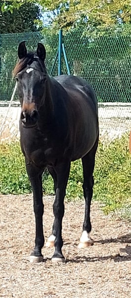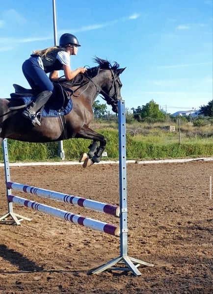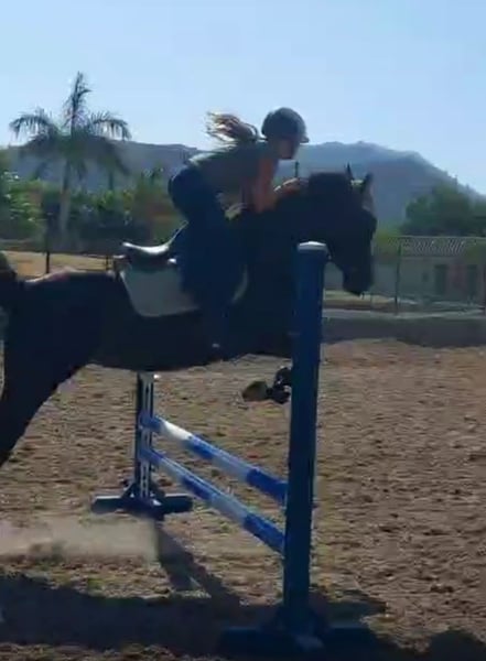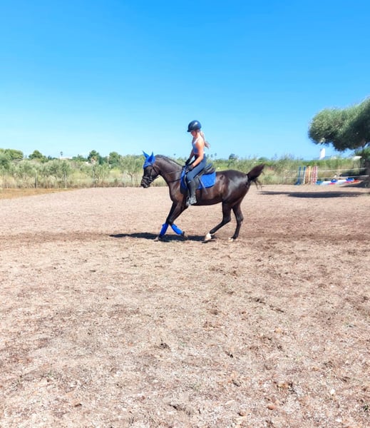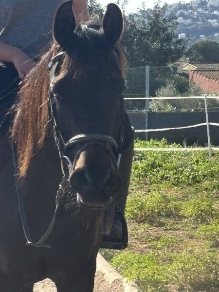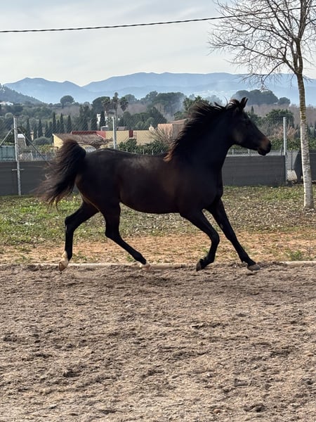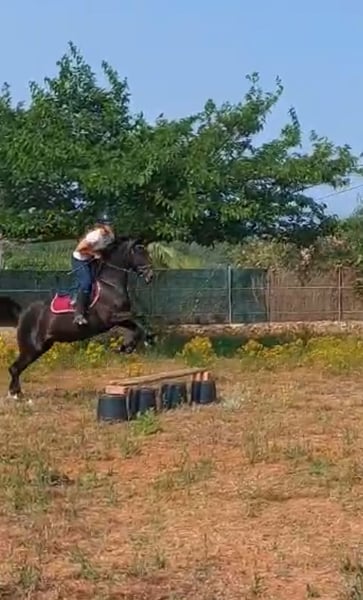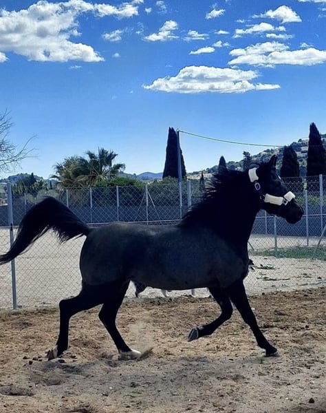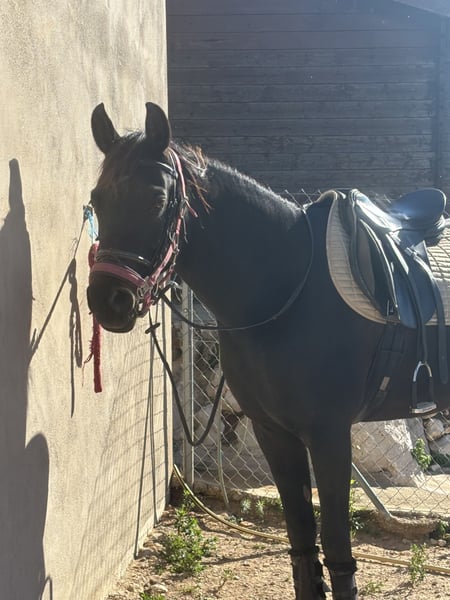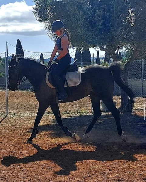 Pepsi, es una yegua árabe negra, es muy tranquila por una árabe, pero también a veces puede ser emotiva así que vale por persona que tiene algo de experiencia será ideal por RAID o paseos largos , que es una yegua sana , no se cansa es muy resistante con la color. La he comprado por mi hija hace más de 2 años ( la niña tenía 10 años) siempre se ha portado bien y salta con ella recogidos de 80 cm sin problema Le yegua es muy respetuosa 9 años 1m55 Pies descalza Polivalente Estabulación libre