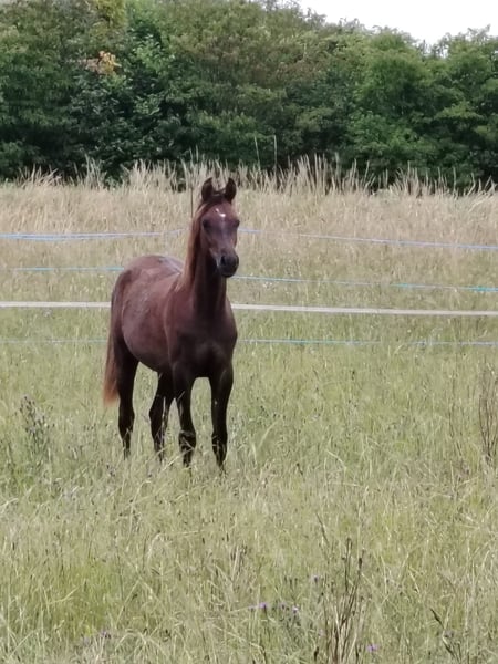Hallo allemaal, Prachtige volledig geregistreerde Arabische veulen. De vader, KHOUROS, is afstammeling van MAKLOUF, wereldkampioen, en zijn moeder is DARIKE. Geboren in kastanjebruin, heeft zijn vacht een mahoniekleur. Hij heeft een sterke aanleg voor endurance. Kaidan is zeer aanhankelijk en rustig, en zal, zoals zijn naam al aangeeft, een trouwe metgezel zijn. Hij is 18 maanden oud, volledig hengst. Als hij voor volgende zomer geen nieuw huis vindt, zal hij gecastreerd moeten worden. Momenteel heeft hij een schofthoogte van 1,55 m. Hij wordt met een halster gehanteerd en houdt van kriebels. Voor meer informatie kunt u contact opnemen via privébericht. Andere foto's op aanvraag.