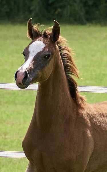 Een hengstveulen met bijzondere uitstraling, een echte blikvanger. Solide en correct, gefokt voor de sport. Zijn moeder is een VZAP-premiemerrie. Zijn vader, A Magic Man of Kossack, was twee jaar lang de hoogst gewaardeerde hengst van zijn jaargang. Hij is ook een VZAP-premiehengst. Onder het zadel is hij rijdbaar en bereid om te presteren. Beide ouders kregen hoge cijfers voor de kwaliteit van hun basisgangen. Hij is robuust en wordt met liefde grootgebracht op grote weiden. Hij zal opgroeien met vier veulens van zijn jaargang. Meer informatie op de Vogelsberg Arabians pagina. Foto's: Marixx Film & Fotografie, Maria Sens