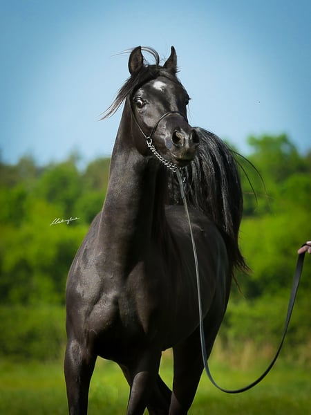 Exceptional Arabian Stallion – Born 2022 Discover the beauty and elegance of this stunning black Arabian stallion, born in 2022. Standing at 153 cm, he embodies the classic Arabian grace combined with impressive breeding heritage. Perfect for enthusiasts seeking a promising young horse with exceptional lineage, this stallion offers both beauty and potential. Well-handled and healthy, he is ready to become a valuable addition to your breeding program or riding endeavors. Don’t miss the opportunity to own this remarkable Arabian horse. Contact us today for more information!