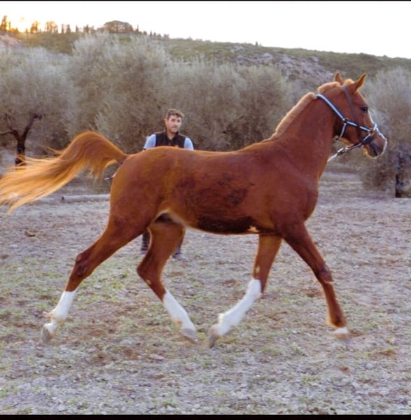 Se vende potro pura raza árabe de las mejores líneas a nivel mundial para hacer 3 años en mayo de 2026, está entero sin castrar hijo de hayati ibn el shaklan único hijo cubriendo yeguas de el shaklan que lo tenemos en propiedad, muy noble pero con carácter y mucha fuerza, es un caballo iniciado en doma de cuerda prácticamente está sin tocar