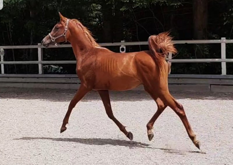 Conformation-rich full Arabian stallion, born in 2022, with excellent pedigree and a very good temperament, available for sale. The stallion has been professionally backed and trained for five months and demonstrates very rideability, willingness to learn, and a clear mind. Training & Character • Professionally worked for 5 months • Confident in walk, trot, and canter • Experienced in lunging, trail riding, traffic, and everyday situations (construction sites, etc.) Especially noteworthy: Very calm and steady, fearless, and always controllable, even in more challenging situations. • Well-behaved in daily handling • Farrier-friendly • Loading-friendly • People-oriented • Not a difficult stallion Therefore, also suitable for ambitious leisure riders. Movement • Steady rhythm in all gaits • Elastic and expressive • Comfortable to sit Suitable for: • Leisure riding • Endurance riding • Dressage • Possibly equine-assisted therapy