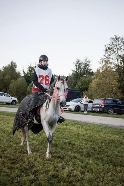 Gut gebaut, proportional und gut bemuskelt. Breite Brust, starker Rücken und trockene Beine. Er hatte nie gesundheitliche Probleme oder Verletzungen. Er hat eine Geländetauglichkeitsprüfung bestanden. Drei Jahre im Renntraining und regelmäßige Starts zeugen von seiner robusten Gesundheit. Unter dem Sattel: Sanft, gehorsam, leicht zu reiten. Arbeitet problemlos mit Stuten. Er folgt gerne den Anweisungen, ist nicht schreckhaft. Er kennt den Straßenverkehr, Hunde und Lärm. Immer motiviert für das Training, absolviert problemlos weitere Runden. Gewöhnt an Auswärtstrainings und erfahrener Turnierpferd. Hauptsächlich startet er unter der Juniorin. Qualifikationen: 1× CEI* 100 km MPJ – 1. Platz. Ausgezeichneter Stoffwechsel, schnelle Antritte an die Barriere, stets sauber und klar im Bewegungsablauf. Herzfrequenz stabil, unabhängig von den Umständen. Gut ausgebildet, arbeitet an der Hand, in gymnastischen Reihen und Cavaletti. Er hat einen bequemen, effizienten Bewegungsablauf. Im Umgang mit der Longe ausgebildet, bewegt sich korrekt an der Longe.