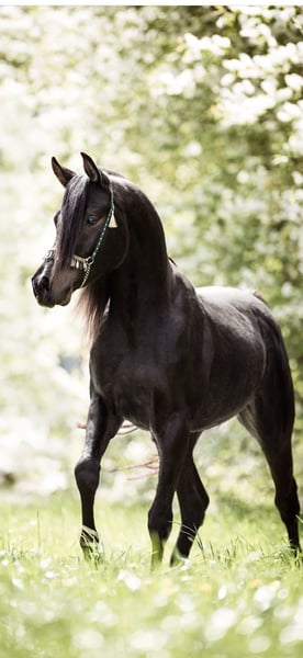 HLP Siegerhengst mit 8,53 dieses Jahr, dass ist die Höchste Punktzahl, die ein Hengst arabischer Abstammung in Stadl Paura je erreicht hat ( teilt sich den Titel mit Hengst aus 2023) !! - Springvermögen 9,5 - Für alle Rassen zugelassen ( auch Trakehner, Quarab, Pintabian) ! ! - Hannoveraner Verband Hb 1b, Seine Nachkommen erhalten einen Abstammungsnachweis der höchsten Kategorie - Stockmaß 1,52 - Röhrbein 19 cm - geb. 11.03.2019 - CA und SCID frei - Ala E/E - Rappvererber - Wir sind transparent ! ! Prüfungsergebnisse und Punktzahl der HLP und Körnung zu jeder Zeit einsehbar. - Prämierte Nachzucht - sprich dein Fohlen bekommt bei uns volle Papiere und alle männlichen Nachkommen sind körfähig ! ! Shaamir ist ein junger Hengst der charakterlich und optisch keine Wünsche offen lässt. Ob bei Badeausflügen, Tricks, Freiarbeit, Horsemanship, Auswärtstrainings, Titelbild und Postermodel oder als Alltagsbegleiter im Bereich der Behindertenarbeit zeigt er sich stets aufgeschlossen, neugierig und kontrollierbar. Er ist immer leistungsbereit und zeigt großes Talent am Sprung. Ist aber generell ein Allrounder, mit dem alles Spaß macht. Shaamir deckt in Deutschland • im Natursprung und ist EU weit über TG Samen erhältlich.