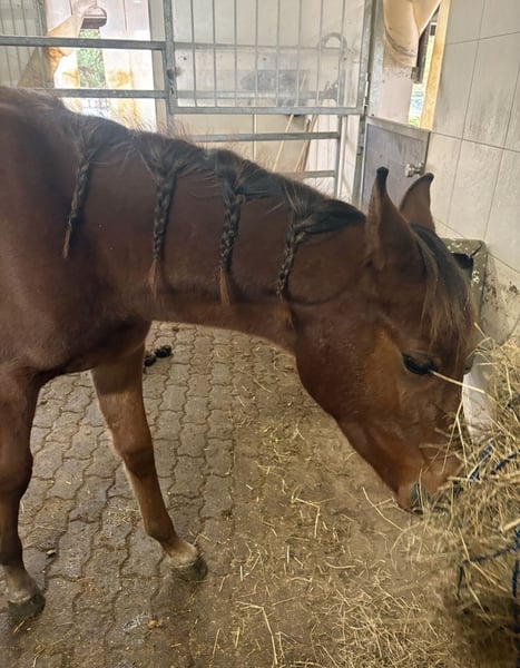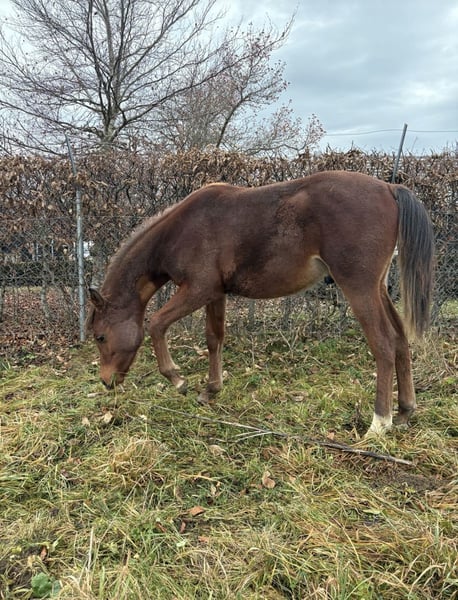 Schweren Herzens steht ein ausdrucksstarkes, elegantes Araber Hengst - Fohlen, geboren Februar 2025. Equidenpass vorhanden, Vater Exagon OS zum Verkauf. Aufgrund eines Schicksalschlages und starken Veränderungen im neuen Jahr suche ich schweren Herzens für mein Goldstück ein 5 Sterne zuhause! Keine Händler oder sonstiges. Er überzeugt mit einem Charakter aus Gold, wunderschönen Gangarten und einer wunderschönen Fellfarbe. Er bringt alles mit was man sich wünscht. Er kennt das Fohlen ABC, ist halfterführig und lässt sich ohne Probleme anfassen und kuscheln. Gegebenenfalls auch für die Zucht interessant, als Distanzpferd oder als Freizeitkumpel. Altersbedingt ist er aufgeweckt, voller Energie, neugierig und verspielt. Er ist super clever und setzt neue Sachen schnell um. Er kennt Boxenhaltung und Offenstall. Verträglich in der Herde. *Kleiner Makel am rechten Hinterbein. Momentan heilt dort noch eine Wunde, diese wird jedoch nicht mehr behandelt und ist nur noch oberflächlich. Er hat jedoch keine Einschränkungen oder bleibende Schäden. Lediglich ein närbchen. Wurde in der Klinik geröntgt. Mit ist sein neues zuhause sehr wichtig. Ich wünsche mir für ihn ein Ort wo er sich ordentlich austoben kann mit großen Koppeln und Menschen die ihn lieben und gut versorgen. Idealerweise mit spielkumpeln und einer artgerechten Haltung. Bei Interesse gerne anschreiben und vorbeikommen! Videos können gerne per WhatsApp verschickt werden. Mir wäre es sehr wichtig das er schnellstmöglich umziehen kann.