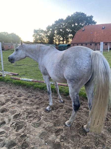 Shayan( Soraya El Assuad x El Ninjo) sucht ein arbeitsreiches neues zu Hause. Bei uns wurde er hauptsächlich im Gelände sowie auf dem Reitplatz geritten. Ein Schatz im Umgang, der mit seinen Kumpeln in reiner Offenstallhaltung lebt. Regelmäßig geimpft, beim Hufschmied, Osteopathen, Zahnarzt. Nur aus gesundheitlichen Gründen der Besitzerin an Bestplatz abzugeben.
