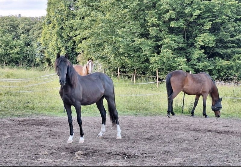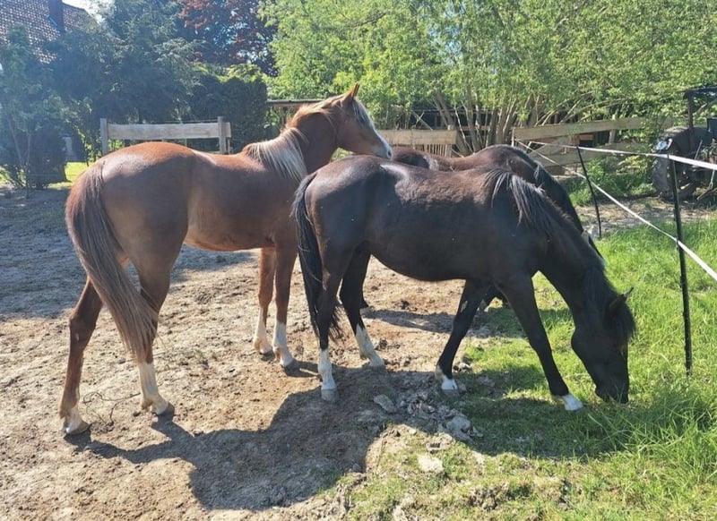 Due to family circumstances, I am considering selling one or two of my young horses. * Jet black with 4 white socks, Arabian special horse with papers. 50% Paso Peruano, gaited horse potential, born 10/22, expected final height around 150cm, knows the basics of young horse training, free from vices, robust/friendly temperament. Expressive. €4000 negotiable. * Light chestnut with a blaze and white legs. Bright long mane. With papers from A QT Guy, expected final height about 158cm, born 06/22, knows the basics of young horse training, friendly and gentle to handle, good foundation as a riding horse, typical head. €5000 negotiable. Both horses are of course healthy and without known illnesses. They live in a paddock with a mixed group with currently 24-hour turnout. Barefoot, farrier-friendly, regularly vaccinated and dewormed. Both horses will only be placed in a loving home. Inquiries are welcome, including price suggestions.