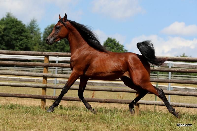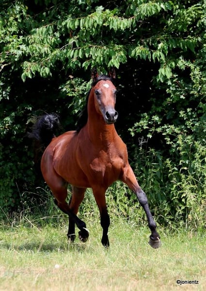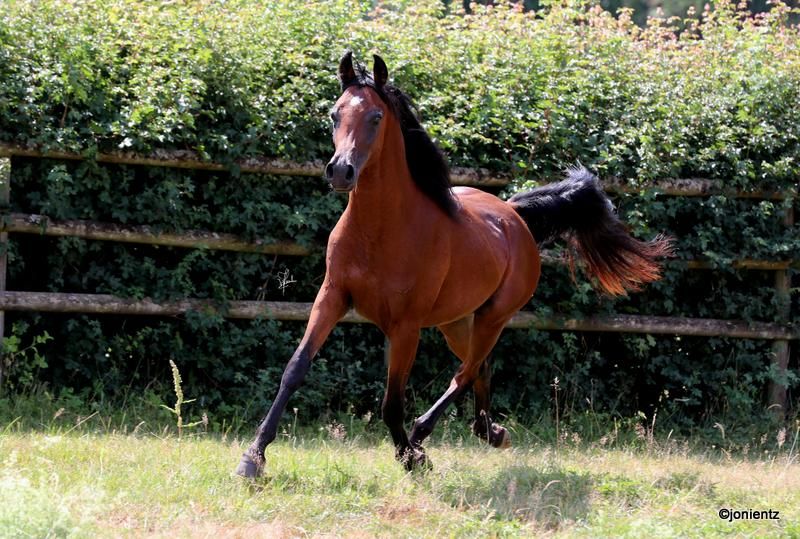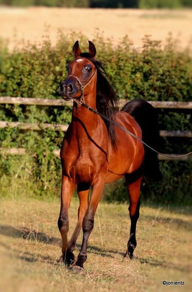 Talal El Mujid est un magnifique jeune étalon égyptien brun issu d'un élevage de premier choix avec des lignées très intéressantes. Il réunit les caractéristiques typiques de cette noble race : intelligence, grâce et un tempérament doux. Il possède une excellente conformation et un bon équilibre, ainsi que des mouvements exceptionnels, ce qui le rend adapté à la fois pour la reproduction et pour les loisirs. Talal est très charmant, bien socialisé, vit en grande troupeau et se montre calme et amical dans ses interactions. Il est déjà habitué au licol et à l'entraînement à la conduite, et montre un grand potentiel pour une formation ultérieure. Si vous êtes intéressé, nous serions ravis de vous contacter pour partager plus d'informations et convenir d'un rendez-vous pour une visite. www.goschenhof-arabians.de