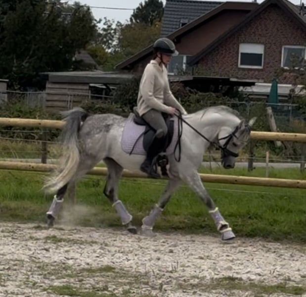 Traumhaft schöner Wallach mit netter Abstammung sucht ein neues Zuhause INSHA ELCAAN OX ist ein 5-jähriger, ca. 1,48 m großer Wallach, der nicht nur durch sein elegantes Erscheinungsbild überzeugt, sondern auch durch seinen verspielten und verschmusten Charakter. Er lässt sich sehr fein reiten, reagiert sensibel auf die Hilfen und zeigt besonders in der Dressur seine Stärke. Elcaan arbeitet motiviert mit, lernt schnell und bereitet seinem Reiter stets Freude. Auch im Gelände ist er absolut zuverlässig und geht problemlos alleine. Für Reitanfänger sowie Wiedereinsteiger ist er ebenfalls gut geeignet. Aktuell steht er im Stall, verbrachte jedoch den Sommer über 24/7 auf der Wiese. Mit anderen Pferden ist er sehr verträglich. Vorne ist er beschlagen. Seine Zähne wurden frisch gemacht und er wurde osteopathisch behandelt. Ein Pass mit Abstammung ist selbstverständlich vorhanden. Bei weiteren Fragen stehe ich Ihnen gerne zur Verfügung. Liebe Grüße