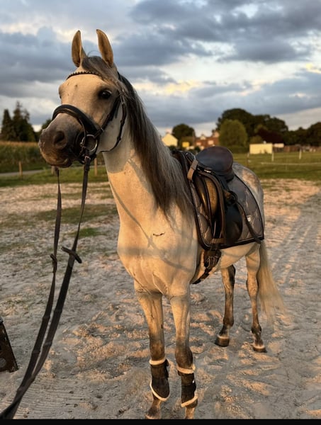 Dreamy 5-year-old gelding with a lovely pedigree seeking a new home INSHA ELCAAN OX is a 5-year-old, approximately 14.8 hands tall gelding who impresses not only with his elegant appearance but also with his playful and affectionate nature. He is very sensitive and fine to ride, responding promptly to aids, and demonstrates his strengths particularly in dressage. Elcaan works with motivation, learns quickly, and always brings joy to his rider. He is also completely reliable in the field and can be ridden alone without any issues. He is suitable for beginner riders and those returning to riding. Currently, he is stabled but spent the summer months on pasture 24/7. He gets along very well with other horses. He is shod in front. His teeth have been recently floated, and he has received osteopathic treatment. A pedigree paper is of course available. Please feel free to contact me if you have any further questions. Best regards