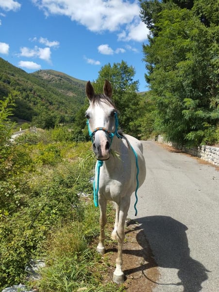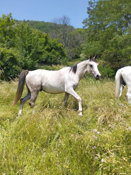 Kahlil, gelding, DSA 88% Arabian, full papers, just turned 5 years old. He is approximately 1.55 m at the withers. Beautiful conformation and elegant movement, with great potential for endurance and competition. He is a gentle, sensitive horse full of energy. Still green in training, ridden at all three gaits, good with handling and lunging, with a good temperament, suitable for an experienced rider. Very people-oriented, stands quietly when given the four feet, and ties without issue. He is barefoot and lives outside in a paddock or pasture all year round, with unlimited food. He respects fences even without electric fencing and lives in a herd without problems. He is not used to loading into trailers but is being worked on. Regular farrier visits, dewormed, veterinary checks and vaccinations up to date (next due March 2025), osteopath and dentist last seen in late 2024. Veterinary visit scheduled for early March 2026. I am selling him because I do not have enough time or the level of experience to work with him properly. Located near Aubenas, 07200. Transport possible. Please contact me via private message.