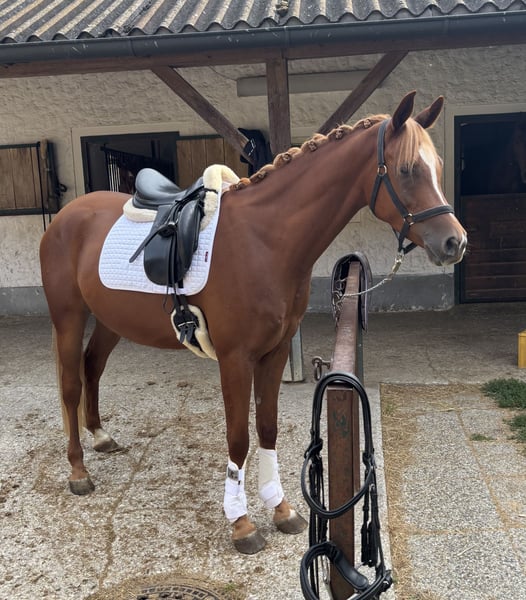 💫 Thoroughbred Arabian Gelding "Gondolier" – 5 years old, 157 cm 💫 📍 Location: District of Vöcklabruck, Upper Austria For sale is Gondolier, a 5-year-old Thoroughbred Arabian gelding with a lot of charm and a lovable rascal character. He was gently backed as a 4-year-old and has since been trained in dressage. Gondolier has already had his first taste of competition this year and handled it confidently and well – he always shows motivation and a willingness to learn. With his playful and people-oriented nature, he brings good vibes to the stable and is up for any fun. He wants to please and loves to work with his person. He needs clear, fair guidance and variety in his training. Best suited for open stable housing or at least with plenty of turnout/paddock time. Not a beginner's horse; he is looking for an empathetic, consistent person with heart and understanding. Gondolier is seeking a place where he can be developed and kept busy – whether in dressage, on trails, or in leisure sports. He wants to grow together with his person and looks forward to a long-term partnership. 📞 If interested or for more information, please feel free to reach out – trial riding possible by arrangement. Price on request.