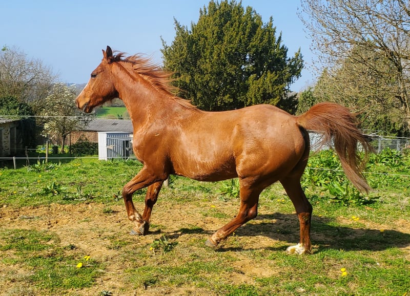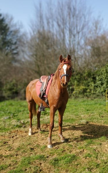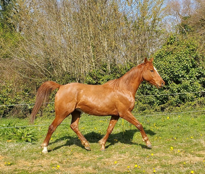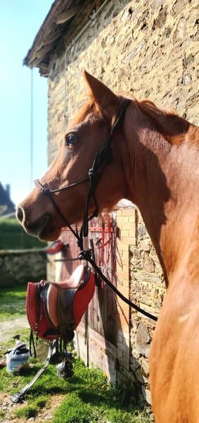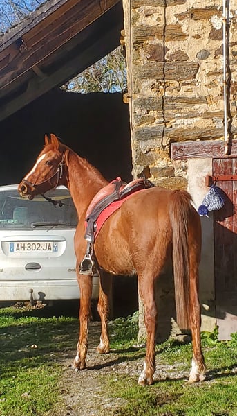 🧡 KASSIB CABIRAT 🧡 4000€ C'est un vrai plaisir de vous présenter cet adorable cheval, hongre ps arabe, qui prendra 6 ans au mois de mai. 1m53/54, un joli gabarit, en pleine évolution. De bons aplombs, des membres sains. Un très gentil jeune cheval, d'une grande douceur, respectueux, attentif, présent, mais très discipliné ! Facile à vivre, facile à gérer. Vit au pré avec les copains, se montre plutôt dominé, et n'a aucun souci à quitter le groupe. Tient à l'attache, ne bouge pas du tout, au pansage, à la préparation. Connaît la douche des membres. Kassib est issu d'un de nos plus prestigieux élevage français, de chevaux d'endurance, mais n'a pas été sélectionné pour le haut niveau. Ça tombe bien, ce n'est pas ce qu'on recherche, ici !😅 Ce qui ne l'empêchera pas de faire le bonheur de son humain, déjà, en extérieur, et par la suite, sur n'importe qu'elle discipline au niveau amateur. Donc, bien né, bien éduqué, bien debourré, Kassib n'a aucune réserve vis-à-vis de l'humain. Confiant et proche, c'est toujours le 1er à venir nous accueillir au pré. 🥰 Debourré à l'automne 2025, il a fait 1 mois en centre équestre, en suivant. Ensuite, repos, et arrivé en janvier, à la maison. La remise en route à été une formalité, et sous la selle, on retrouve la même bienveillance, qu'au sol, ce qui ne l'empêche pas d'être un cheval actif, qui marche déjà d'un très bon pas! Derrière, devant, peu importe, Kassib ne se pose pas trop de questions, et ne se montre pas du tout émotif. Voitures, tracteurs, pas de souci. Il peut s'inquiéter d'une bâche qui frétille, ou d'un tronc d'arbre tombé au sol, comme un jeune cheval qu'il est, mais pas de violence, de demi-tour intempestif, il reste toujours " dans le cadre". Kassib sort parfaitement seul, sans négocier, sans hennir, sans devenir inquiet. Il fait confiance à son humain. Un excellent mental, et une vraie connexion avec le cavalier. Et pour clôturer ce portrait, il possède des allures vraiment très confortables ! Trot et galops qui ne secouent pas du tout!🤩 Un vrai plaisir ! Il n'a jamais été ferré, mais sera peut-être à envisager selon la nature des terrains de son futur lieu de vie. Il a vu le maréchal, et l'osteo, et il fonctionne plutôt très bien! Le dentiste sera à prévoir. C'est un jeune cheval, donc j'attends une personne expérimentée, avec un projet réfléchi et durable dans le temps.😉 Vie au pré avec congénères exigée. Comme d'habitude, je vous enverrai des vidéos ( en liberté et monté), sur WhatsApp , après UNE PRÉSENTATION DE VOUS-MÊME ET DE VOTRE PROJET ! ( merci de ne pas zapper cette étape, c'est dans l'intérêt de tous) Kassib est visible à Glanges 87380. Voilà, vous savez tout, et vous pouvez me joindre au 0666909319 Merci, et à bientôt !😉 ⛔️ Pas de vente à l'étranger ⛔️ pas de vente en club