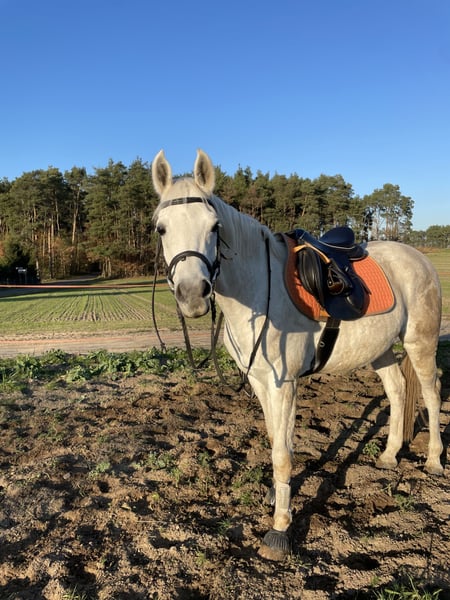 • For sale is a six-year-old Arabian gelding. • Pony type, enjoys human contact (once he gets to know you). • Moves freely in all three gaits both in the arena and in the field. He can navigate poles and small jumps both on the ground and on the lunge line. Has competed in leisure competitions and jumps up to 60 cm, but with his previous owner, only up to 50 cm. Sensitive to the calf and gentle on the bit. He rides in a bridle and halter. On the lunge line, he responds to voice commands as well as to the whip aid, can change direction smoothly, and perform transitions. He has also been lunged without a lunge line. Occasionally, he can buck, but usually out of excitement, for example after a long time in the field. He does not rear or buck. He can ride alone in the terrain or in a group, both as a leader and in a herd. He sometimes panics but is also curious, which makes it easier to guide him past frightening objects. He cooperates during groundwork but can be stubborn; in such cases, only a firm and calm approach will succeed. He is very alert, so during training with many stimuli, he may find it challenging to focus. • Gentle in the herd. Does not bite or kick. Well-behaved with the farrier and during other procedures. Regularly dewormed, vaccinated, and recently had his teeth done. • Ready for further training! • Not suitable for children or riding schools. • Videos of riding available via WhatsApp or private message. • Trial ride for 50 PLN. • Sold only with a custom-made saddle! He has a specific build, making saddle fitting difficult. Not included in the price.