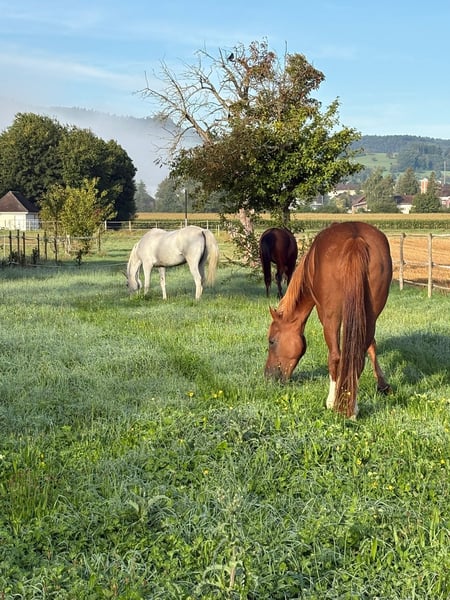 Super schöner kompakt, kräftig gebauter 6 jähriger Vollblutaraber mit einem Stockmass von 1.60 sucht den besten Platz. Er hat eine äusserst starke Hinterhand und läuft von sich aus in einer schönen Anlehnung. Er macht richtig Spass daher bei der Hallenarbeit. Er wurde vielseitig eingesetzt viel in Gelände mit auch drei Distanzritte, schwimmen im See, Gymnastik Cavelletikurs, Hallenarbeit, Longenarbeit am Kappzaum. Er hat ein ruhiges Gemüt. Er ist absolut verkehrssicher, ob Lastwagen, Traktoren oder ein Zug direkt an ihm vorbei fährt, macht ihm nichts. In den Anhänger steigt er gerne problemlos ein. Er lebt in einer Gruppe mit einem Wallach und einer Stute was ihm super gefällt. Er ist total unkompliziert im zusammen leben mit anderen Pferden. Momentan läuft er barhuf oder mit Klebebeschlag. Er ist ein richtiger Sonnenschein, welcher für jeden Spass zu haben ist. Und für seine Leckerlis alles macht. Dabei lernt er sehr schnell Neues, da er sehr clever ist. Aus Zeitmangel in letzter Zeit weniger häufig geritten.