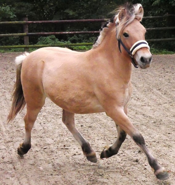 Name: Vara Van't Gors Gender: Mare Date of Birth: June 18, 2024 Height: 125 cm Breed: Norwegian Fjord Horse Pedigree: Lyckängs Tempo x Reinar This beautiful, small Fjord mare is available for sale. Vara currently lives in a herd with three other Fjord mares. She is healthy, robust, and can also be kept in an open stable. Please feel free to contact us at +49 176 62495567 if you are interested. We also offer affordable transportation for your new horse.