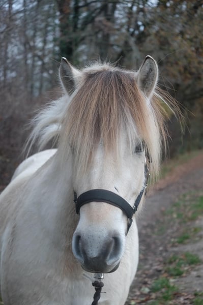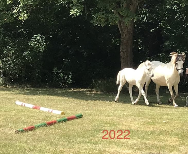 We are selling our self-bred white Fjord mare. Inskar was born and raised on our farm in April 2022, growing up among children, tractors, dogs, and the daily hustle of farm life. She is well accustomed to walks, riding out as a lead horse, ground work, saddling, and harnessing, remaining very calm in all situations. She is extremely affectionate, cuddly, and has a very open, curious, and fearless personality. She won first place at the foal show and comes with full papers; her dam is on-site. Her current height is approximately 143 cm (14.3 hh). We are selling her as a broodmare, as she sustained a leg injury in 2024, which caused an inflammation of her tendon, making her unsuitable for riding. Her teeth, hooves, and deworming are regularly maintained, and a dental passport is available. Please feel free to contact us with any questions or if you're interested.