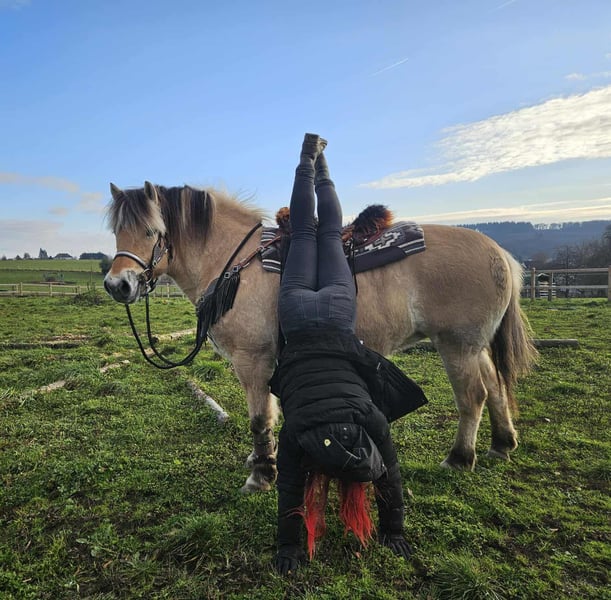 Nette Norwegerstute -Barock lieb, gelassen & vielseitig einsetzbar Alter: 7 Jahre Stockmaß: ca. 1,49 m Preis: 5900,- AKU: vorhanden ✨ Beschreibung: Diese Stute überzeugt durch ein ausgeglichenes Wesen und eine freundliche, angenehme Art. Im täglichen Umgang zeigt es sich brav, menschenbezogen und unkompliziert. Trotz des jungen Alters präsentiert sich das Pferd ruhig, gelassen und nervenstark. Unter dem Sattel arbeitet es kooperativ, lernwillig und zuverlässig. Es zeigt Freude an der Mitarbeit, ist aufmerksam bei der Sache und vermittelt ein sicheres, entspanntes Reitgefühl. Besonders im Freizeit- und Westernbereich ist es vielseitig einsetzbar. 🐎 Perfekt für: Reiterinnen und Reiter, die einen unkomplizierten, freundlichen und verlässlichen Freizeitpartner suchen. Durch das angenehme Stockmaß auch gut geeignet für Jugendliche oder kleinere Erwachsene. Ideal für Freizeit, Ausritte und Wanderritte 🩺 Unsere Pferde werden regelmäßig: – entwurmt – vom Schmied betreut – osteopathisch kontrolliert 🛍 Hofladen: Westernsättel, Trensen & Zubehör 🚛 Transport und Equipment auf Wunsch günstig organisierbar Unser Service: ✅ 3 Monate Umtauschrecht ✅ Proberitt: 35 €, jedes weitere Pferd 25 € (beim Kauf am selben Tag angerechnet) ✅ 100 € Sofort-Rabatt bei Abholung/Transport am gleichen Tag ✅ Persönliche & ehrliche Beratung 📞 Anfragen bitte ausschließlich telefonisch: 0171 – 4001968 🕗 Erreichbar täglich von 8–20 Uhr ⚠️ Keine E-Mail oder WhatsApp ⚠️ Alle Angaben ohne Gewähr