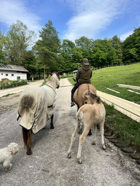 Verkaufe liebevolle Fjordpferd-Stute Zum Verkauf steht eine charmante Fjordpferd-Stute, geboren im Jahr 2019. Sie ist wunderschön kombiniert mit einem freundlichen Wesen und einem Stockmaß von ca. 140 cm. Die Stute ist bestens für die Freizeitgestaltung geeignet und begeistert durch ihr angenehmes Temperament sowie ihre robuste Natur. Ideal für Reiterinnen und Reiter, die ein zuverlässiges und vielseitiges Pferd suchen, um gemeinsame Ausritte und Freizeitaktivitäten zu genießen. Sie ist immer freundlich und hat vor nichts Angst! Ihr aktuell 7 Monate altes Hengstfohlen ist bei passendem Platz eventuell auch zu verkaufen. Bei Interesse oder weiteren Fragen stehe ich gerne zur Verfügung.