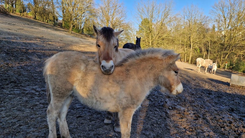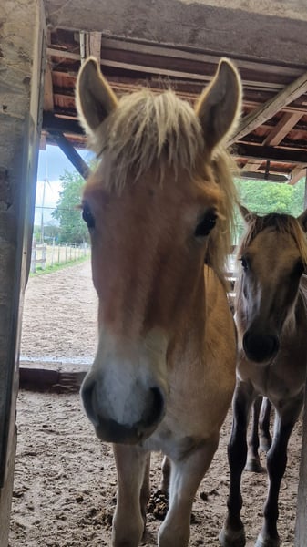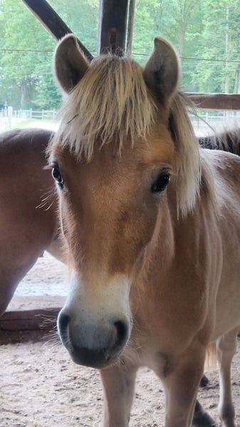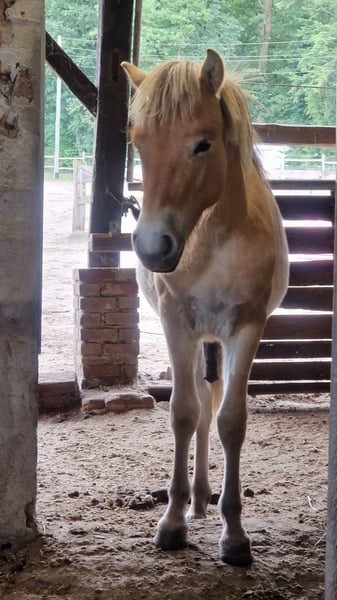 Norwegian foal born in October 2024, available to trusted new owners. Jari lives with his same-age half-brothers in a mixed herd. He is regularly dewormed, vaccinated, and has a passport. Since weaning, his feed has been carefully supplemented based on feed analysis (forage analysis and blood work). He knows the farrier personally and gets along well with him, as does the veterinarian. Jari has already been introduced to many basic things appropriate for his age, including motorway bridges, tractors, dogs, water, Easter fires, trailers, and many children. He is very gentle in handling, calm, and clear in his behavior. For further training (e.g., in the direction of TGI), he could remain here for development.